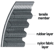 同步帶通常由三部分構(gòu)成:即強力層,齒膠層以及齒布層組成。